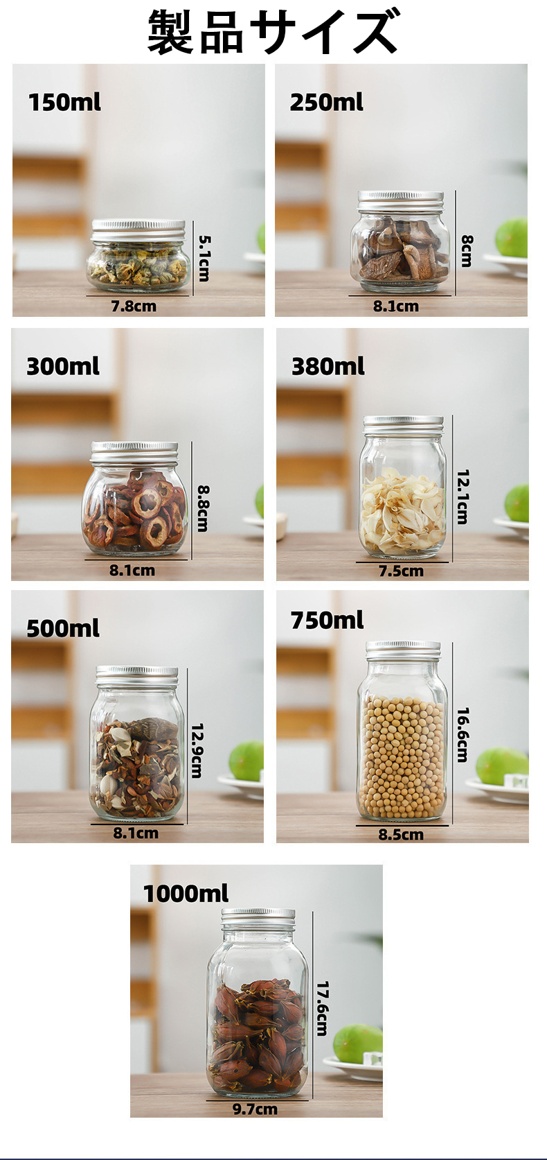 製品名:ガラス製の食品は瓶に分けられてい