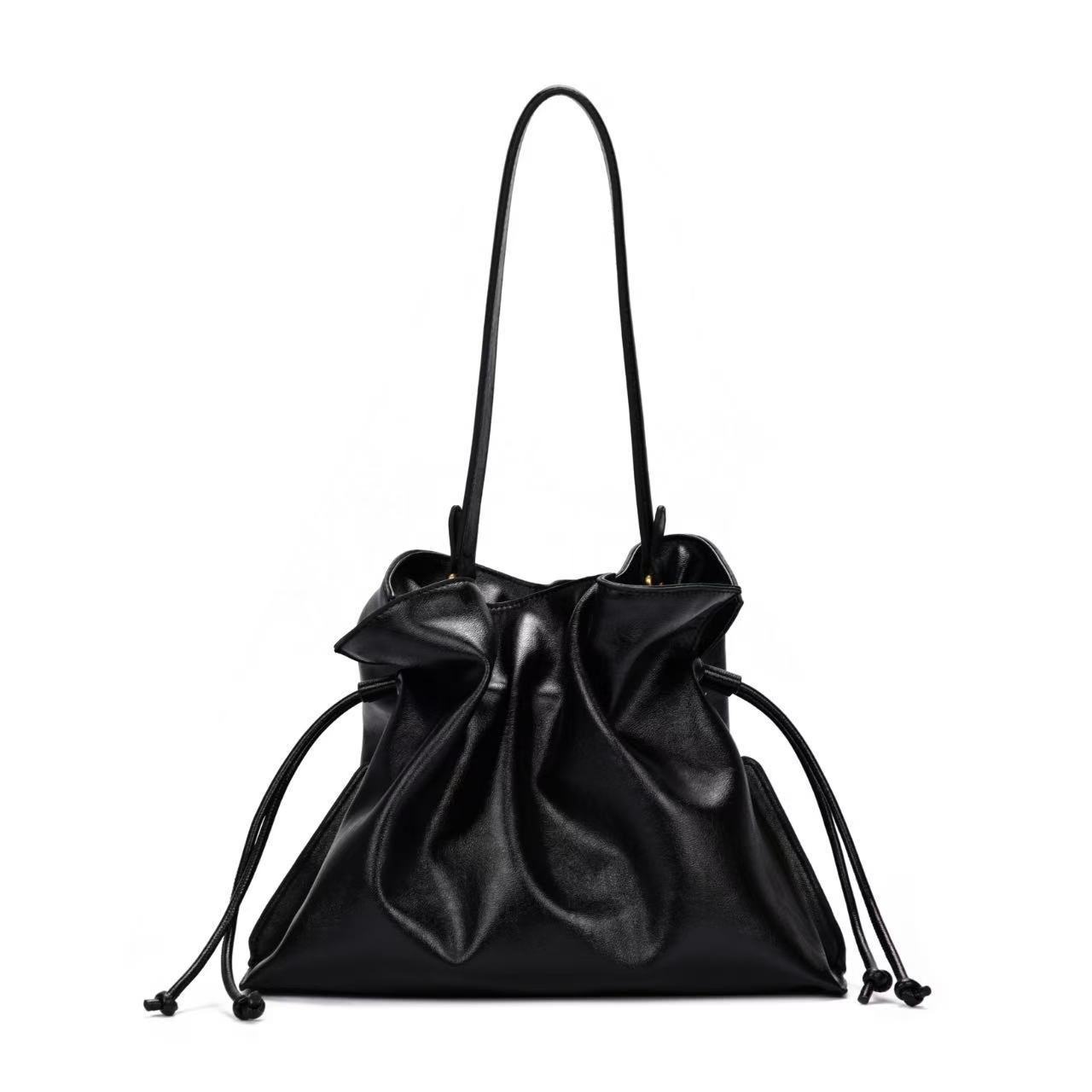 ソフトレザー大容量シワ加工ショルダーバッグ