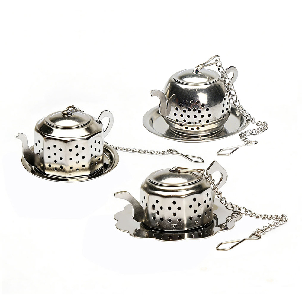 304 ステンレス製 丸型ポット茶漉し 円錐蓋付き