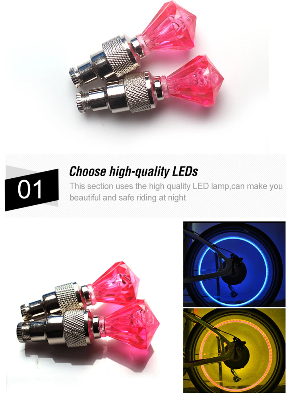 LED Bicycle Valve Light Bike Light Motion Sensor With Battery
